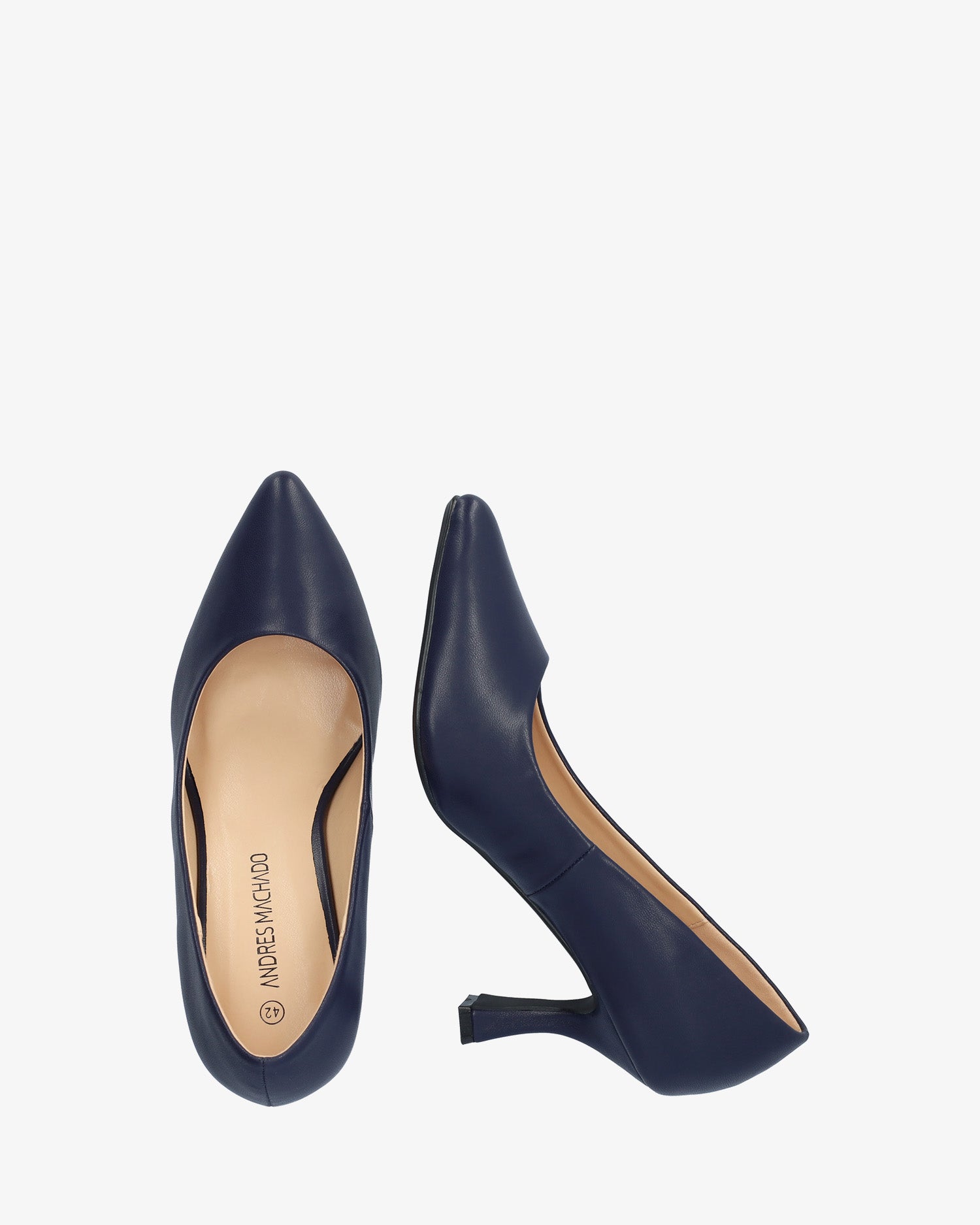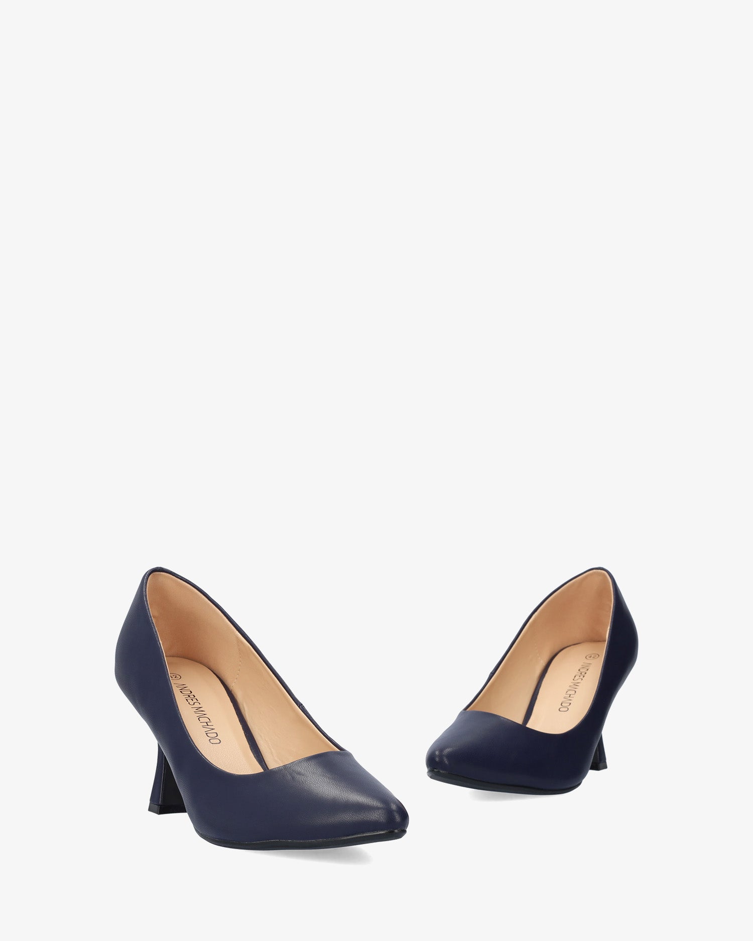 Miękki, granatowy salon. Wykończenie w najlepszym stylu. Obcas typu „kaczuszka” o wysokości 7 cm dla małych rozmiarów od 32 do 35. Obcas o wysokości 8,5 cm dla dużych rozmiarów od 42 do 45.