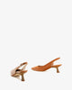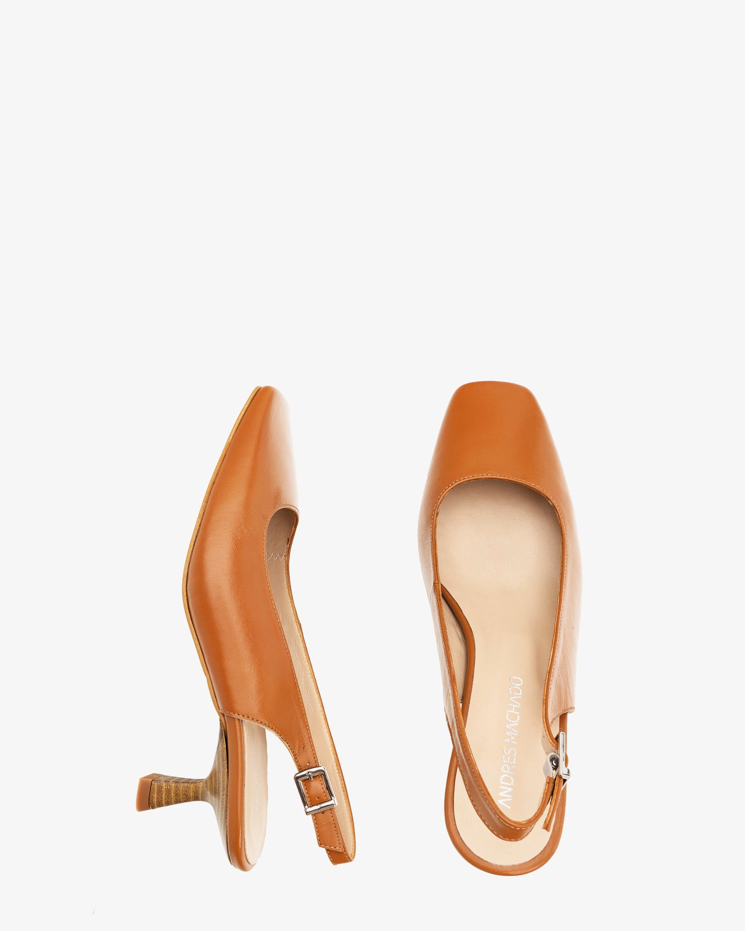 Buty typu slingback ze skóry w kolorze skóry. Fason z kwadratowym noskiem i zapięciem na sprzączkę z boku. Wnętrze wyściełane beżową skórą. Pięta w stylu smoczka wyłożona laminatem imitującym drewno. Dostępne rozmiary od 32 do 45. Obcas 5,5 cm dla rozmiarów 32–38. Obcas 6 cm dla rozmiarów 39–45. Wyprodukowano w Hiszpanii. Dopasowane. Jeśli masz szeroką stopę lub jesteś pomiędzy rozmiarami, zalecamy wybór większego rozmiaru.