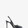 Czółenka typu slingback ze skóry w kolorze granatowym. Zapięcie na sprzączkę i cienką końcówkę. 10 cm dopasowany, wyściełany obcas dla małych rozmiarów od 32 do 35. 11,5 cm obcas dla dużych rozmiarów od 42 do 45. Wyprodukowano w Hiszpanii