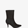 Czarne, miękkie buty. Ozdobne przeszycia od palców do górnej części cholewki. Wykończenie w szczegółach. Zapięcie na suwak po wewnętrznej stronie. Średniej wielkości, smukły obcas wyłożony miękkim kokosem w tym samym odcieniu, 6,5 cm dla małych rozmiarów od 32 do 35. Obcas 8 cm dla dużych rozmiarów od 42 do 45.