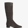 Buty za kostkę wykonane ze zamszu w kolorze antracytowym. Ozdobne przeszycia w tym samym kolorze na cholewce. Zapięcie na suwak po wewnętrznej stronie. Wykończenie w formie kwadratowego noska. Szeroki czarny obcas o wysokości 3,5 cm, odpowiedni dla małych rozmiarów od 32 do 35. Obcas o wysokości 4 cm odpowiedni dla średnich rozmiarów od 36 do 41. Obcas o wysokości 4 cm odpowiedni dla dużych rozmiarów od 42 do 45. Wyprodukowano w Hiszpanii.