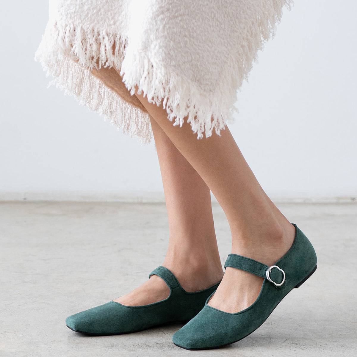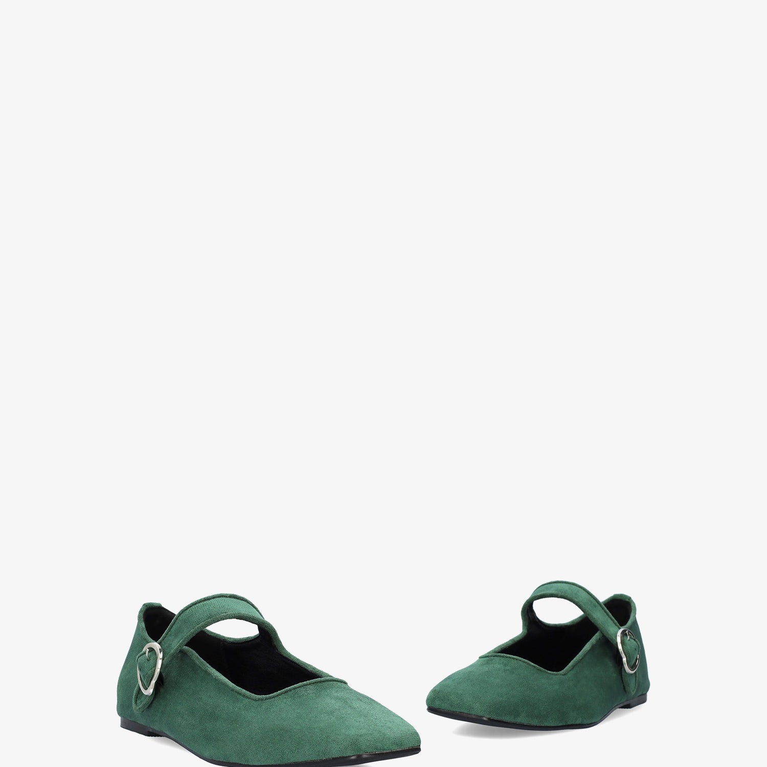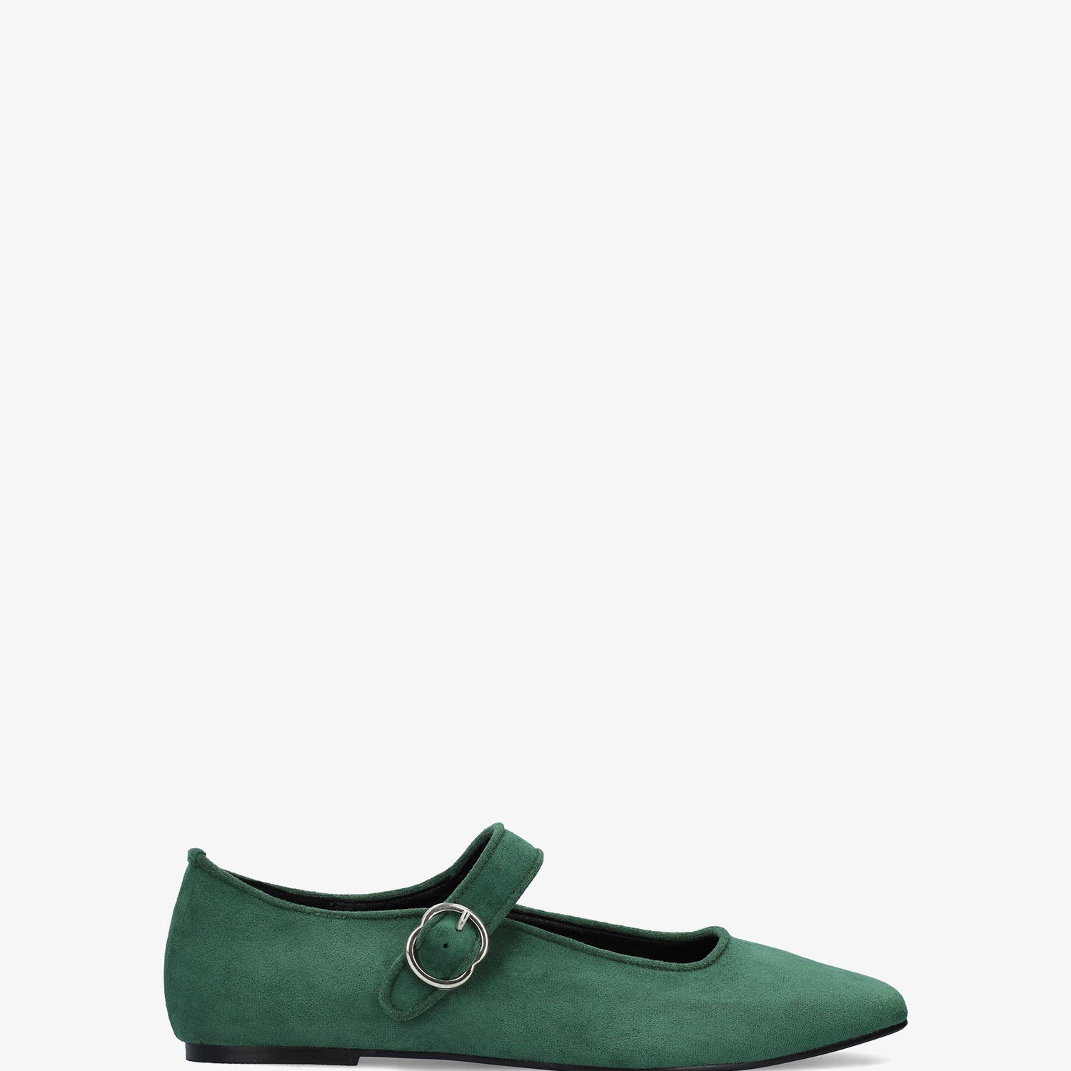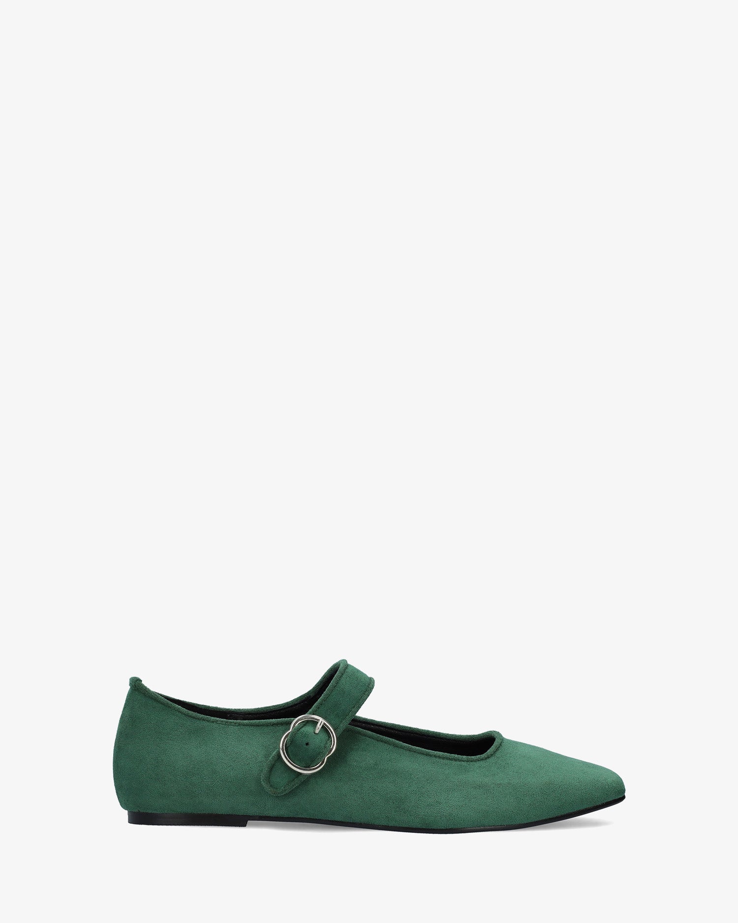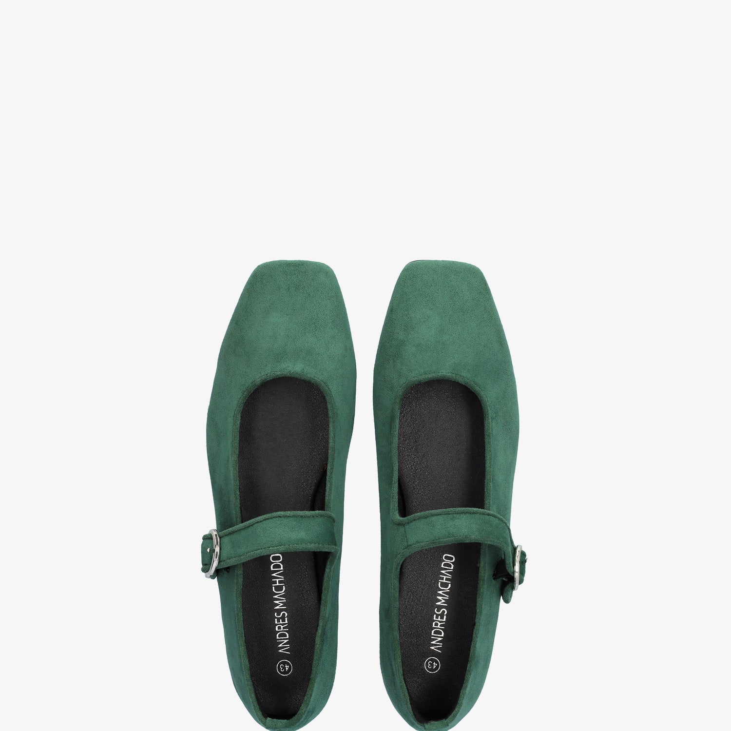 Bailarina plana estilo Mary Jane acabada en punta cuadrada y tira ancha en el empeine con hebilla metálica lateral. Disponible para las tallas grandes de la 43 a la 46.