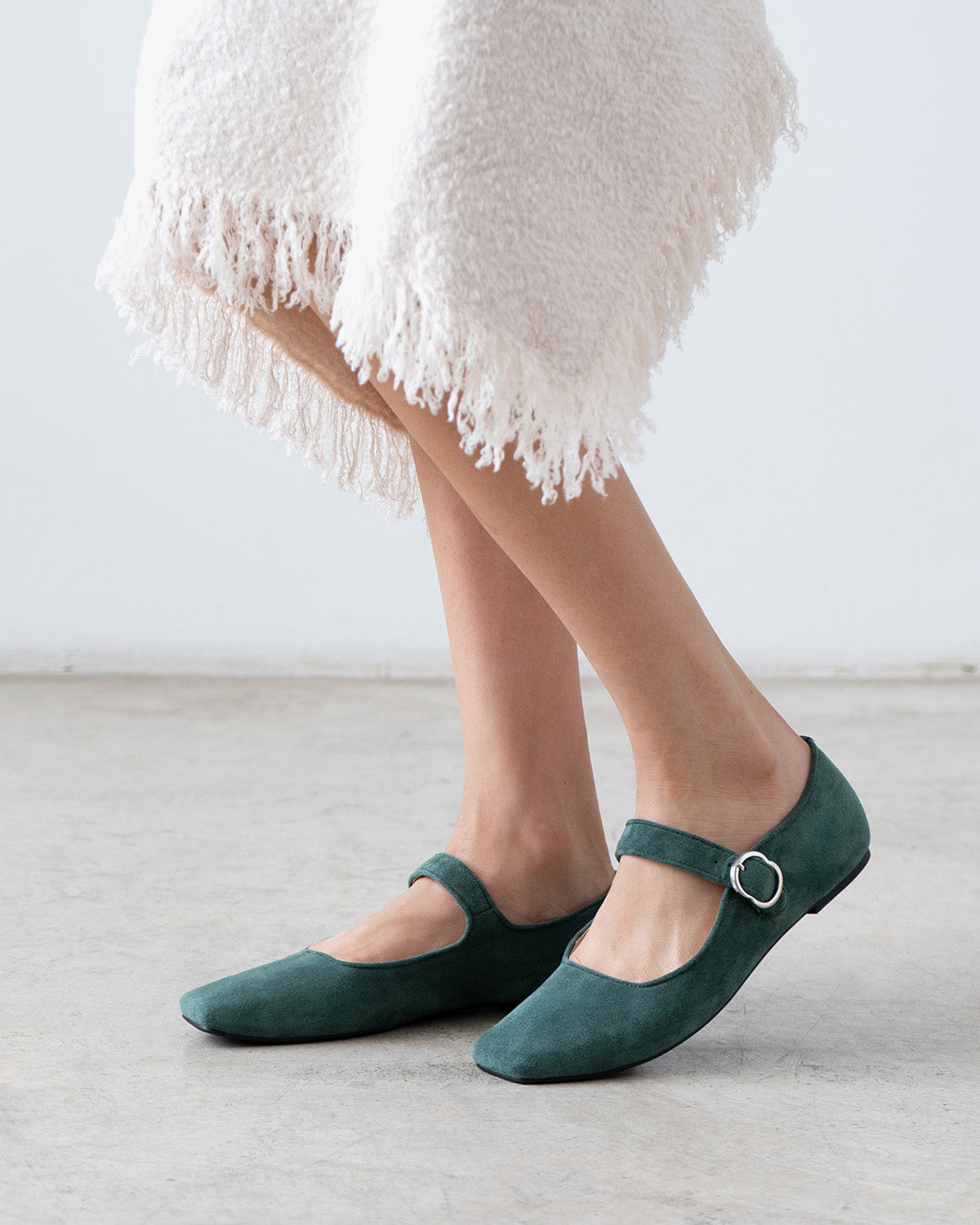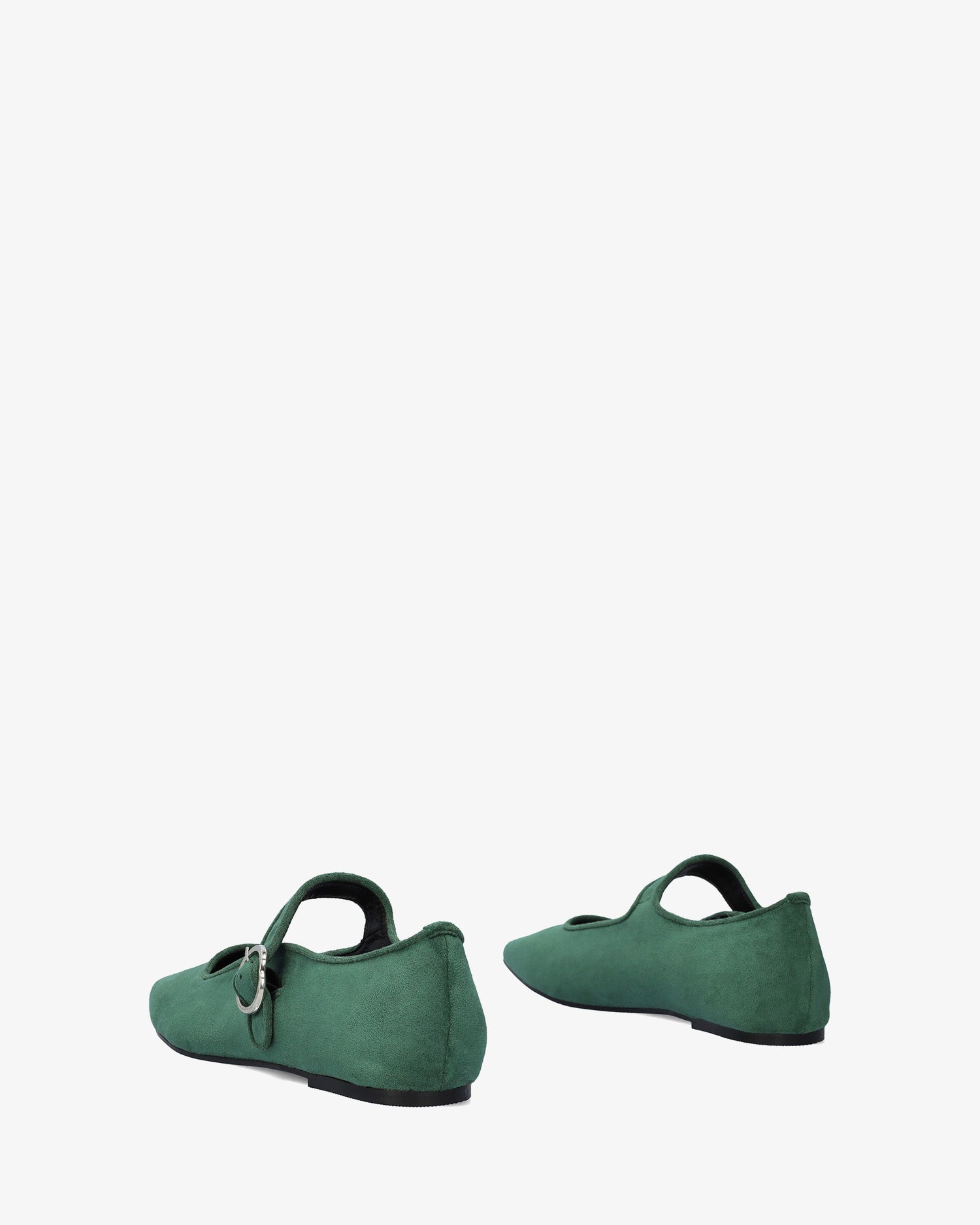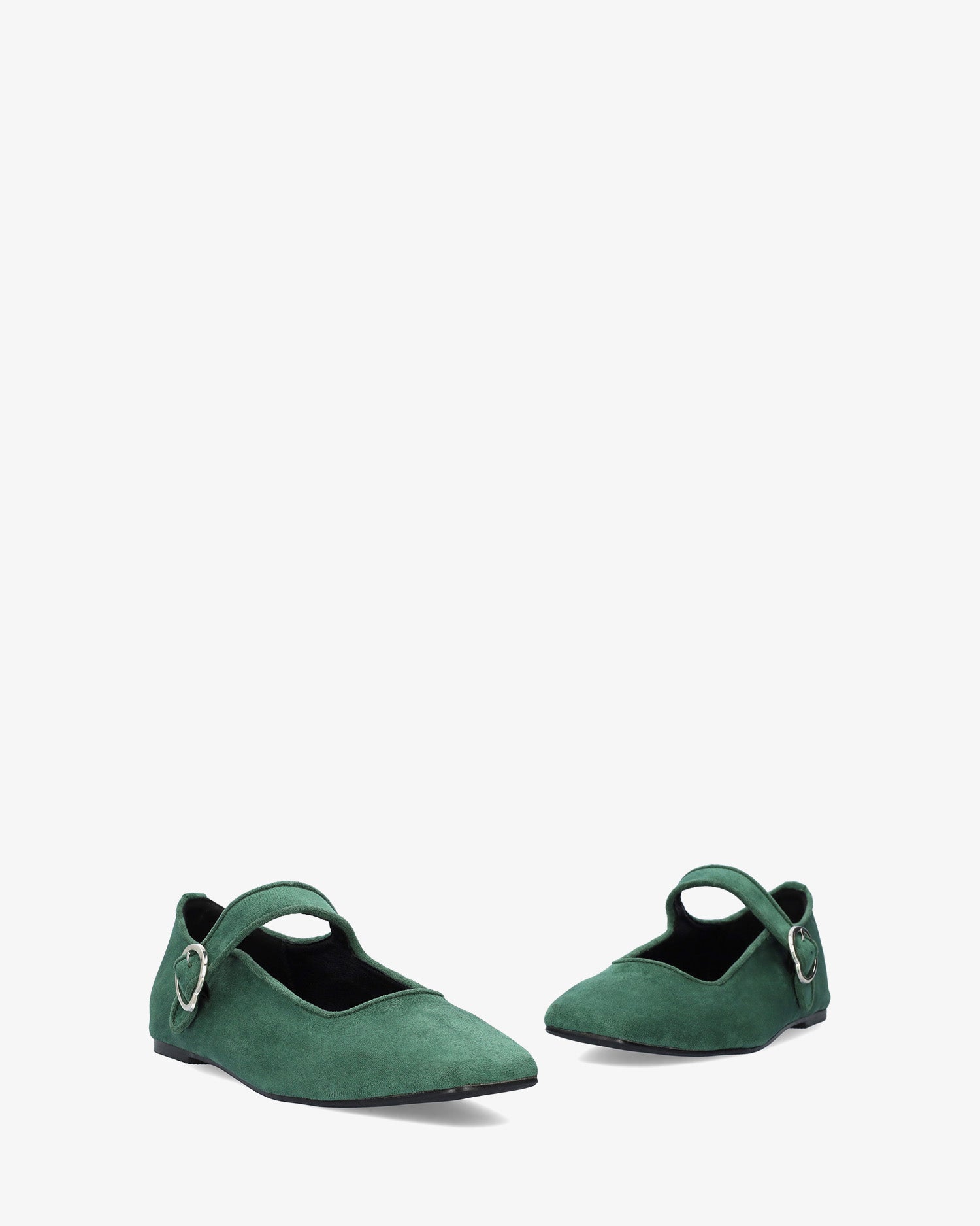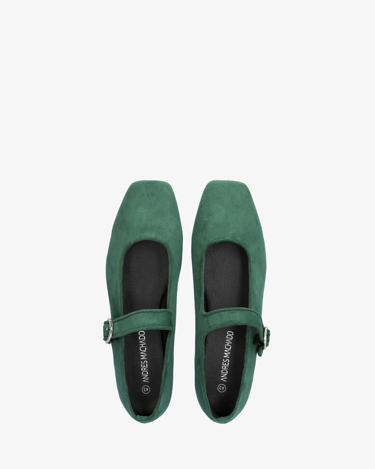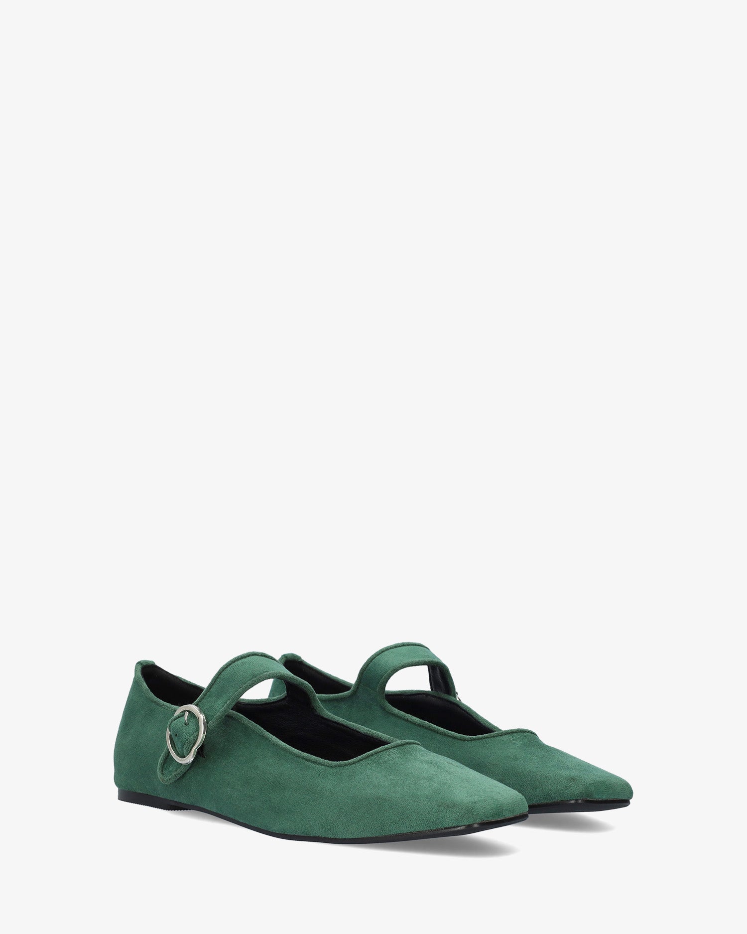 Bailarina plana estilo Mary Jane acabada en punta cuadrada y tira ancha en el empeine con hebilla metálica lateral. Disponible para las tallas grandes de la 42 a la 46.