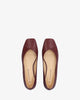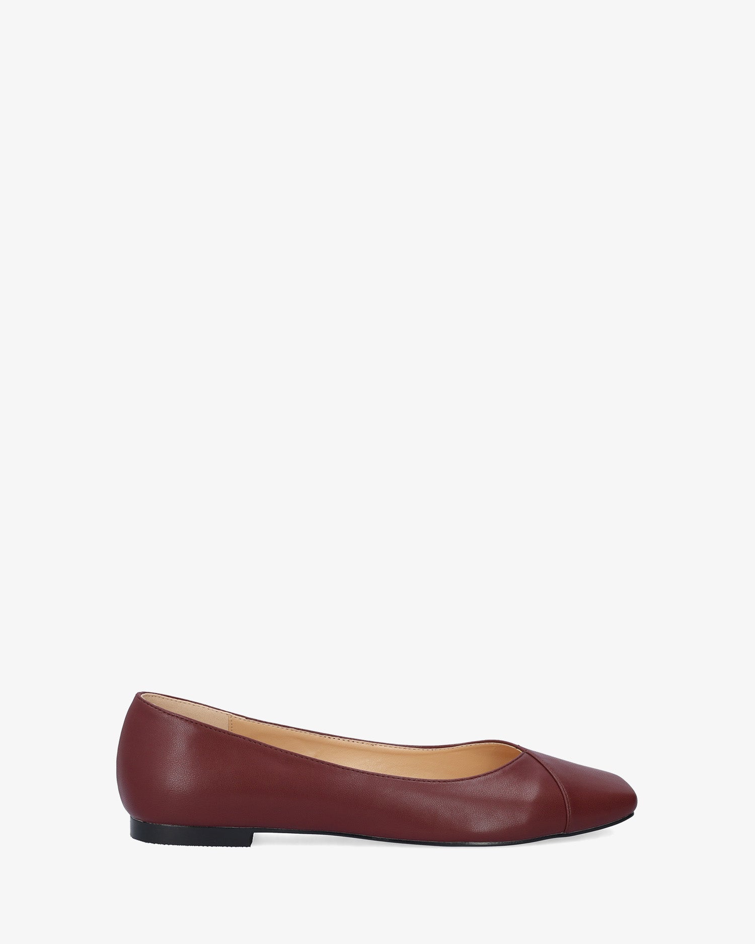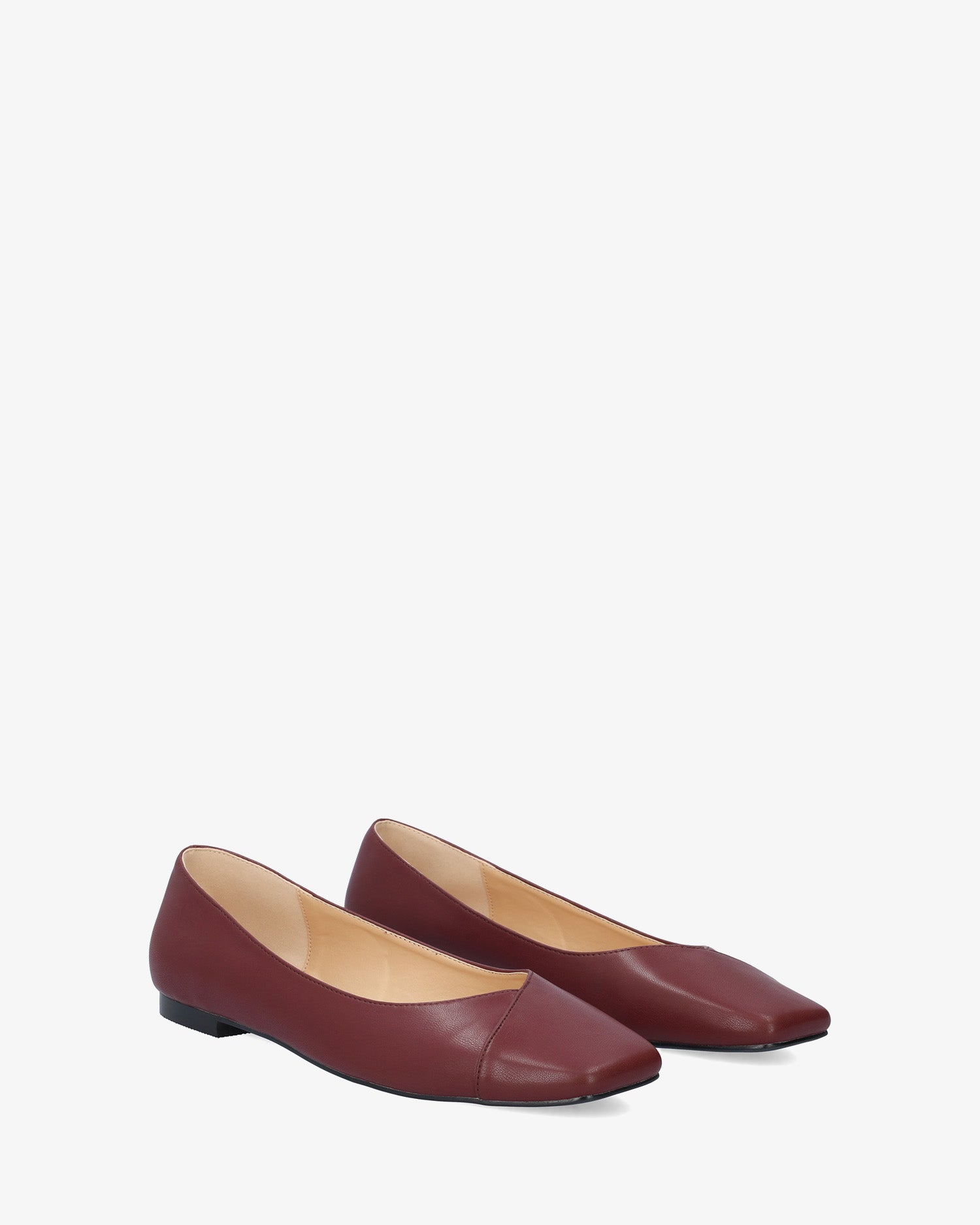 Bailarina plana en soft de color Burdeos. Diseño con acabado en punta cuadrada y pespunte decorativo transversal con hilo al tono en la puntera. Tacón ancho para las tallas grandes de la 42 a la 45. Este modelo calza pequeño, se recomienda coger una talla más de la habitual.