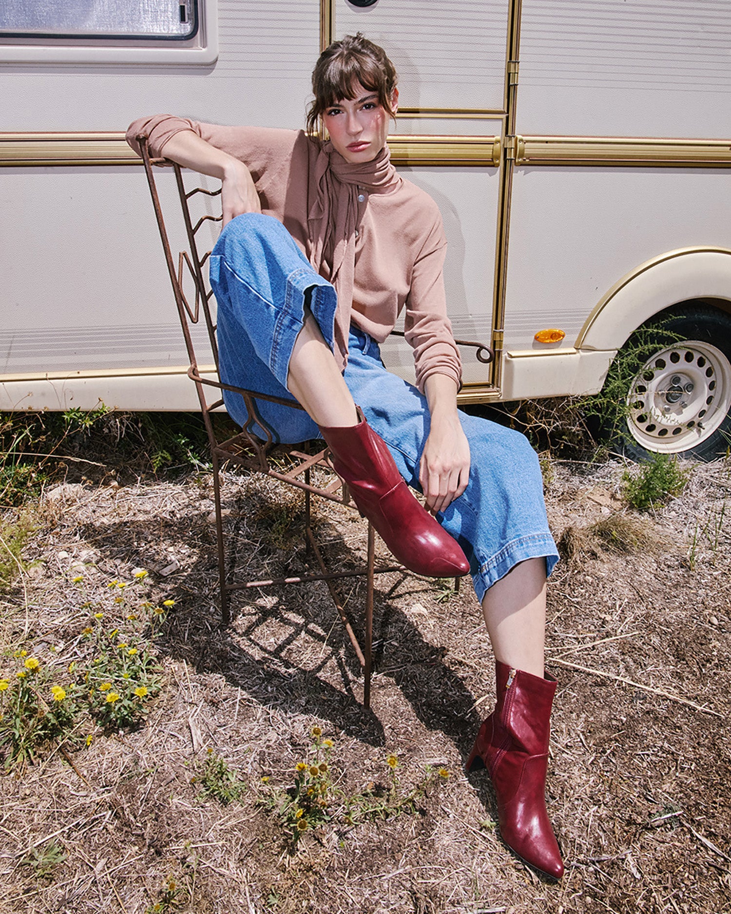 Botín alto en soft de color camel. Detalle de pespunte decorativo en la pala y cierre de cremallera en la parte interior. Acabado en punta fina. Tacón semi-cuadrado forrado al tono de 7 cm para las tallas pequeñas de la 32 a la 35. Tacón de 7 cm para las tallas grandes de la 42 a la 45. Este modelo puede tener una variación de medidas respecto al estandar, te recomendamos que revises los cms de la plantilla o suela interior.