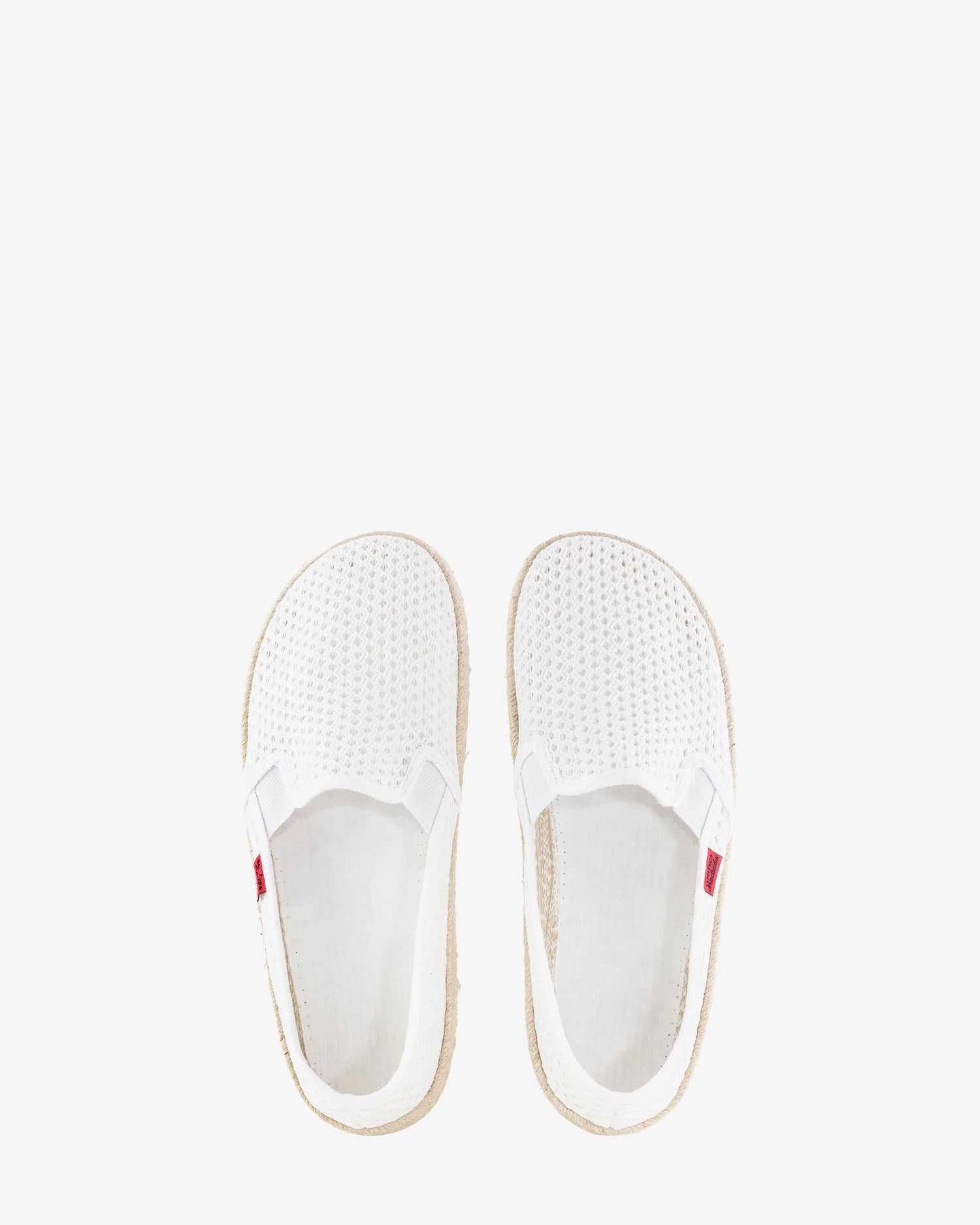 Reiventamos las miticas Zapatillas sin cordones, en Rejilla Blanco. Fabricadas con Sistema Guante tienen la forma del Pie por dentro y son realmente comodas. Suela Vulcanizada de Goma Natural y Banda de yute. Un verdadero Lujo para los pies. Disponibles en todas las Tallas de la 36 a la 50. UNISEX