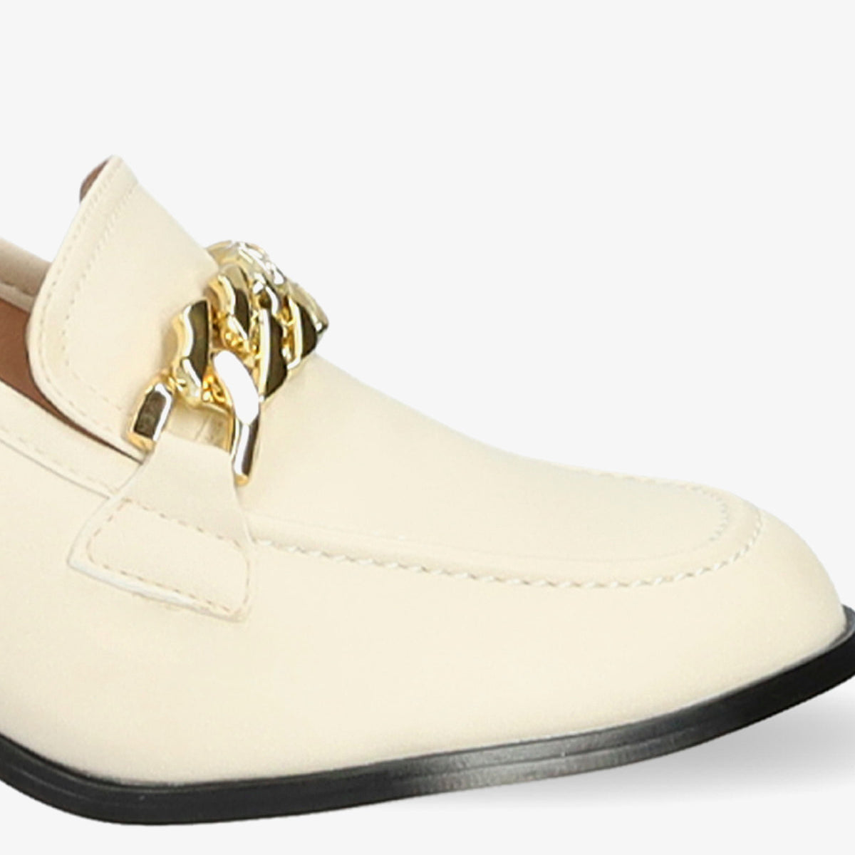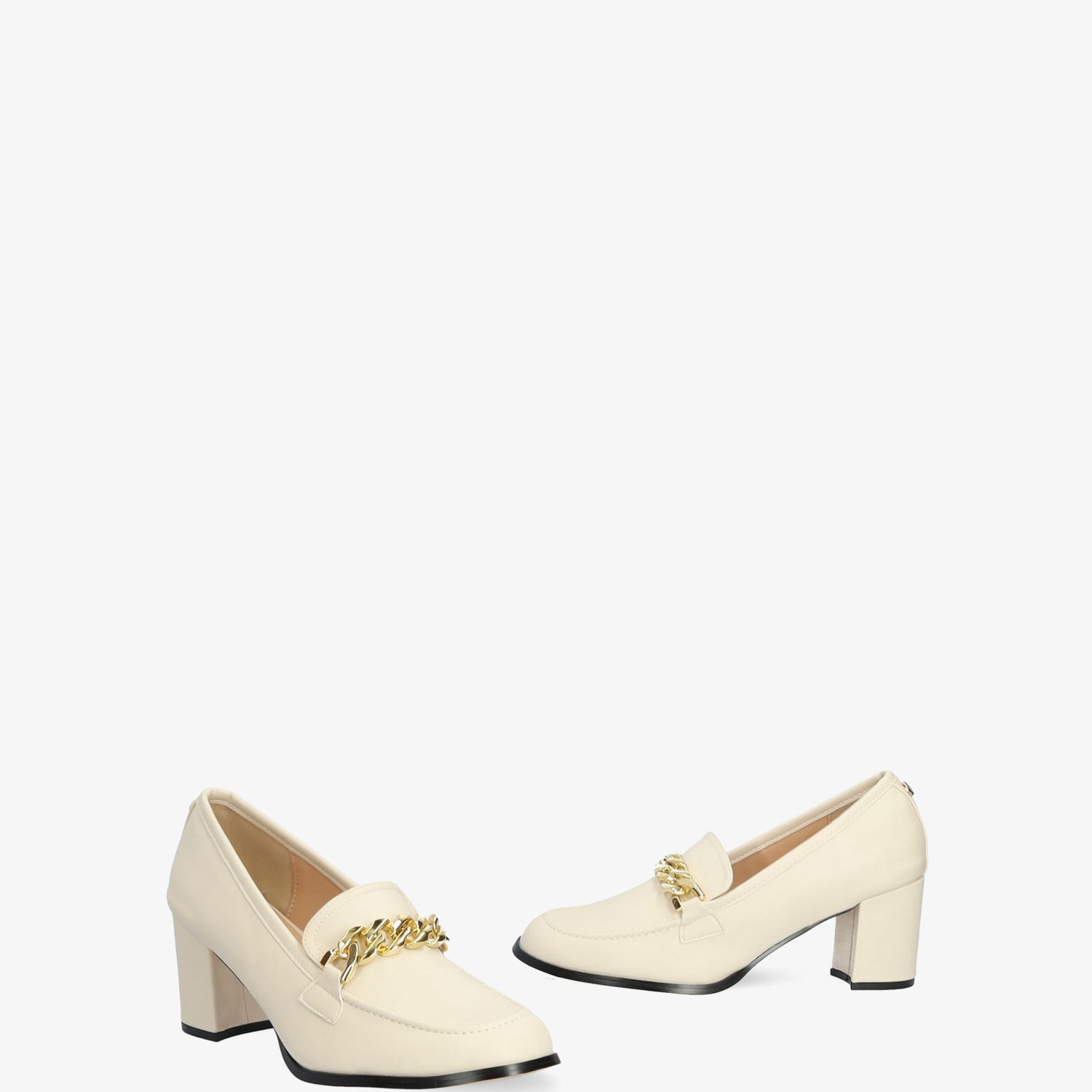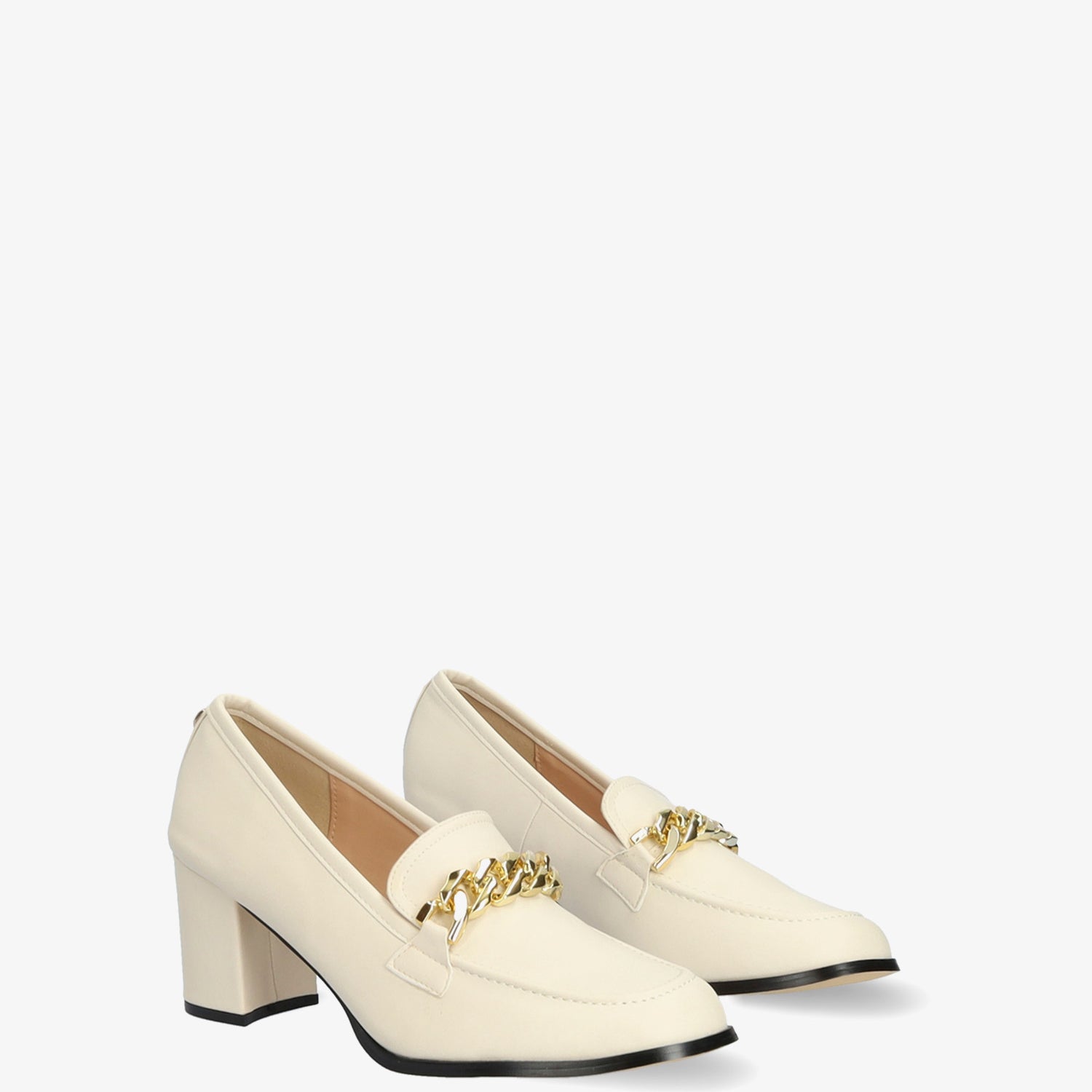 Mocasín blanco tacón cadena dorada
