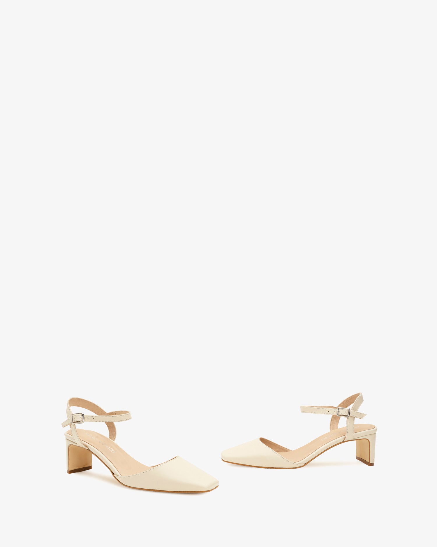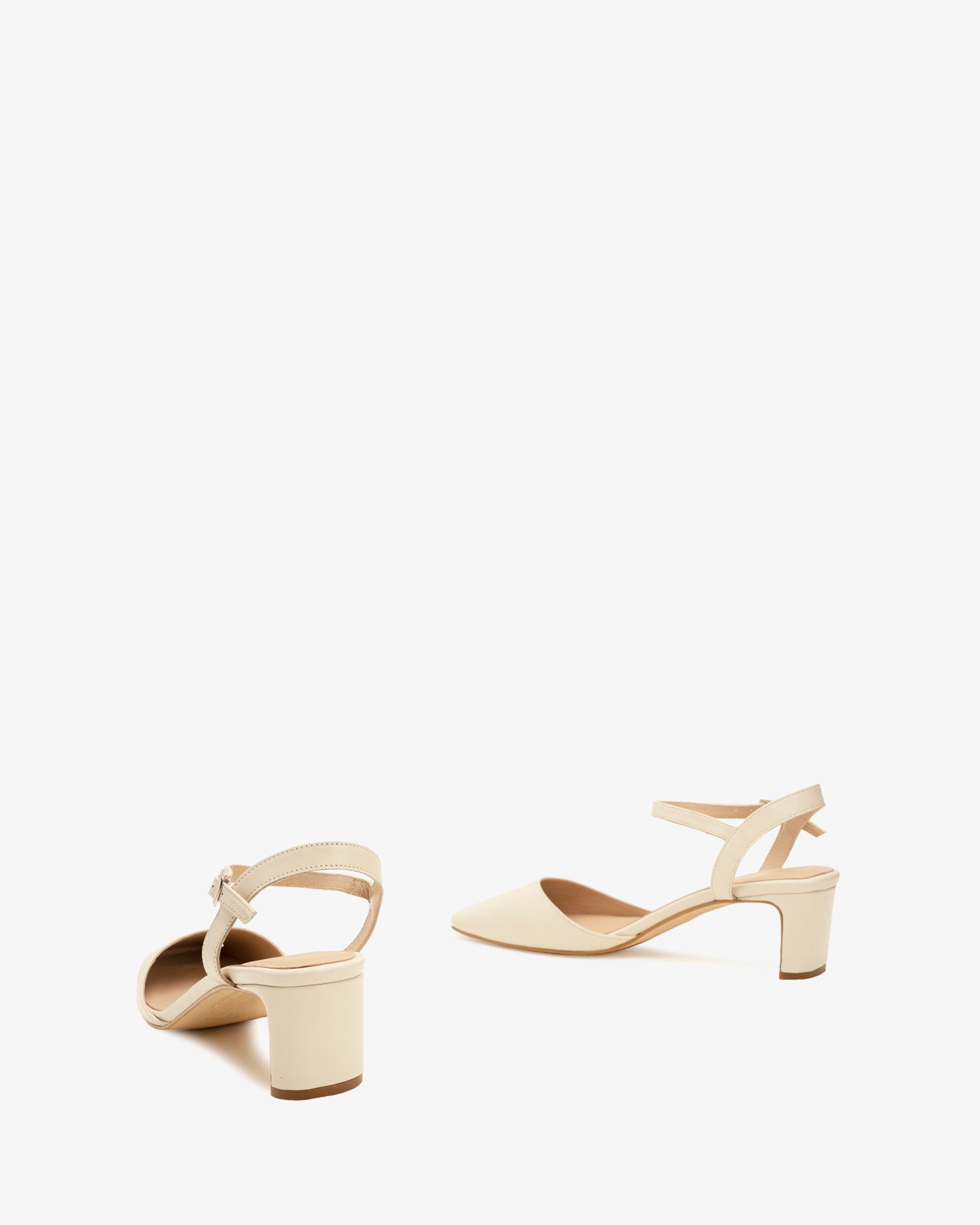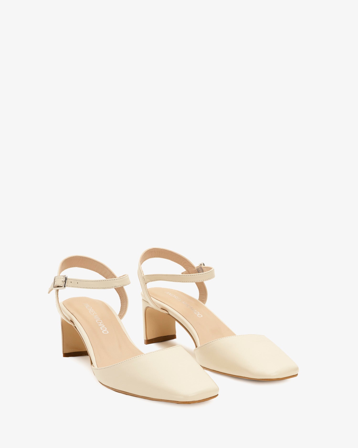 Salón destalonado en piel lisa de color hielo. Diseño de puntera cerrada y acabado cuadro. Cierre mediante hebilla en pulsera al tono al tobillo. Forro interior el piel camel. Tacón forrado al tono con forma semi circular. Tallas disponibles de la 32 a la 45. Tacón de 4,5 cm para las tallas pequeñas de la 32 a la 35. Tacón medio de 5,5 cm de la 36 a la 41. Tacón de 6,5 cm para las tallas grandes de la 42 a la 45. Fabricación española.