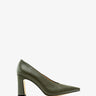 Salón en piel de color Kaki. Acabado en Punta. Forro interior en piel de color camel. Tacón ancho forrado al tono de 8,5 cm para las tallas pequeñas de la 32 a la 35. Tacón de 9,5 cm para las tallas grandes de la 42 a la 45. Fabricado en España.