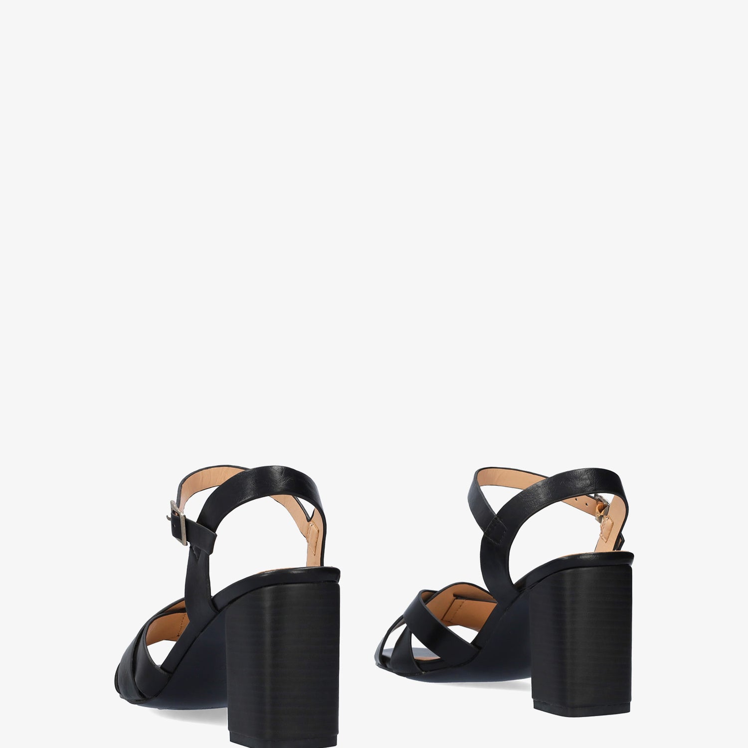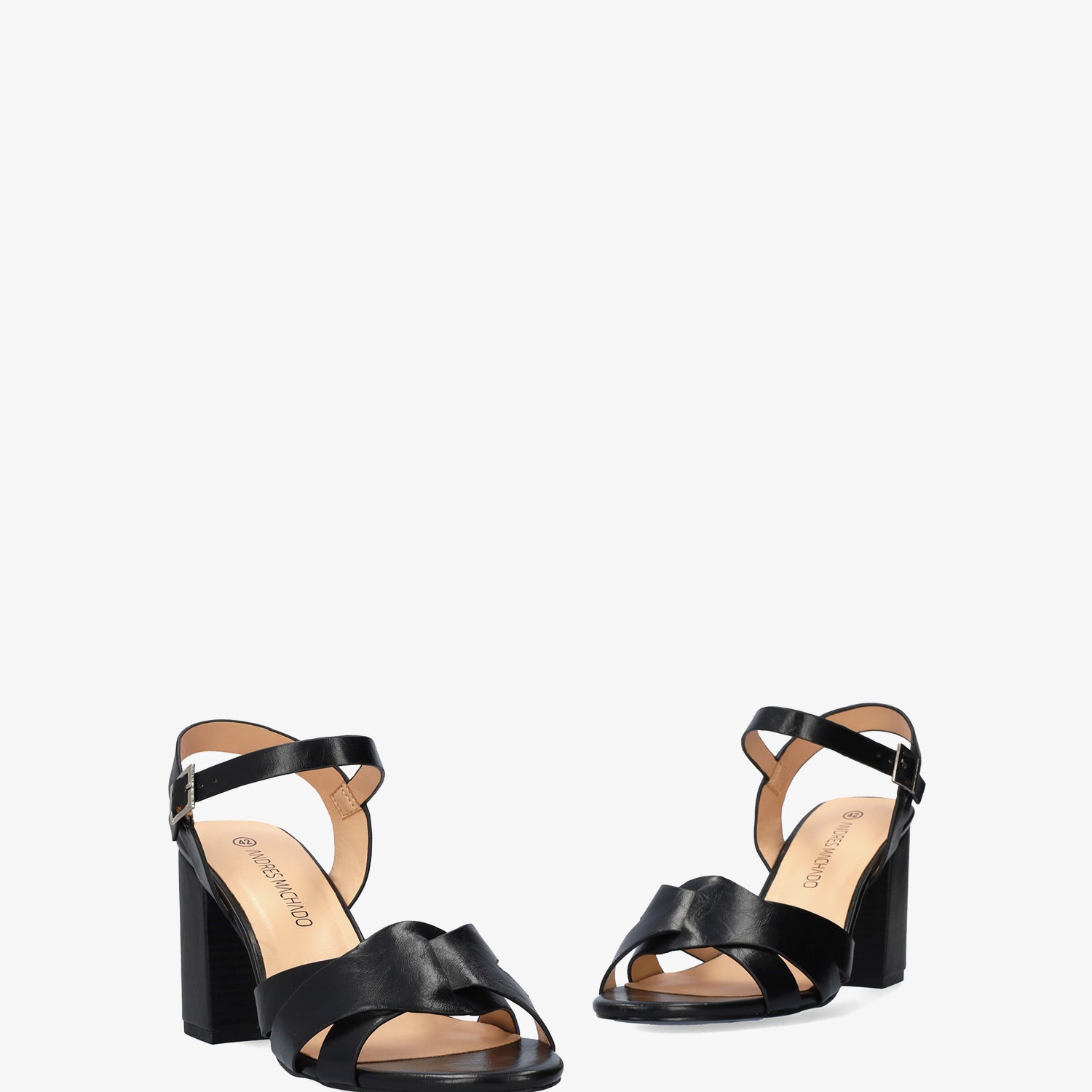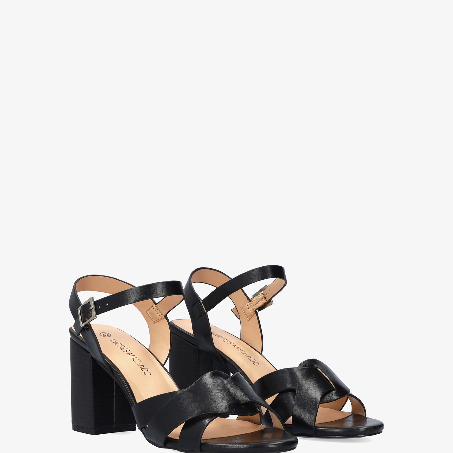 Sandalia con tacón cuadrado en soft de color Negro. Diseño con detalle de tiras entrelazadas y ovaladas sobre el empeine al tono. Cierra de hebilla metálica con tira en pulsera al tono para mejor sujeción al tobillo y acabado en punta abierta redondeada. Tacón de 8,5 cm para las tallas pequeñas de la 32 a la 35. Tacón de 9,5 cm para las tallas grandes de la 42 a la 46. Este modelo puede tener una variación de medidas respecto al estándar, te recomendamos que revises los cms de la plantilla o suela interior.