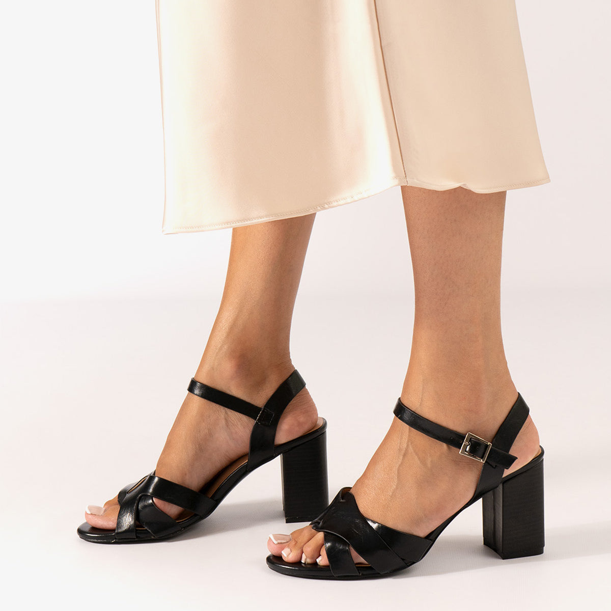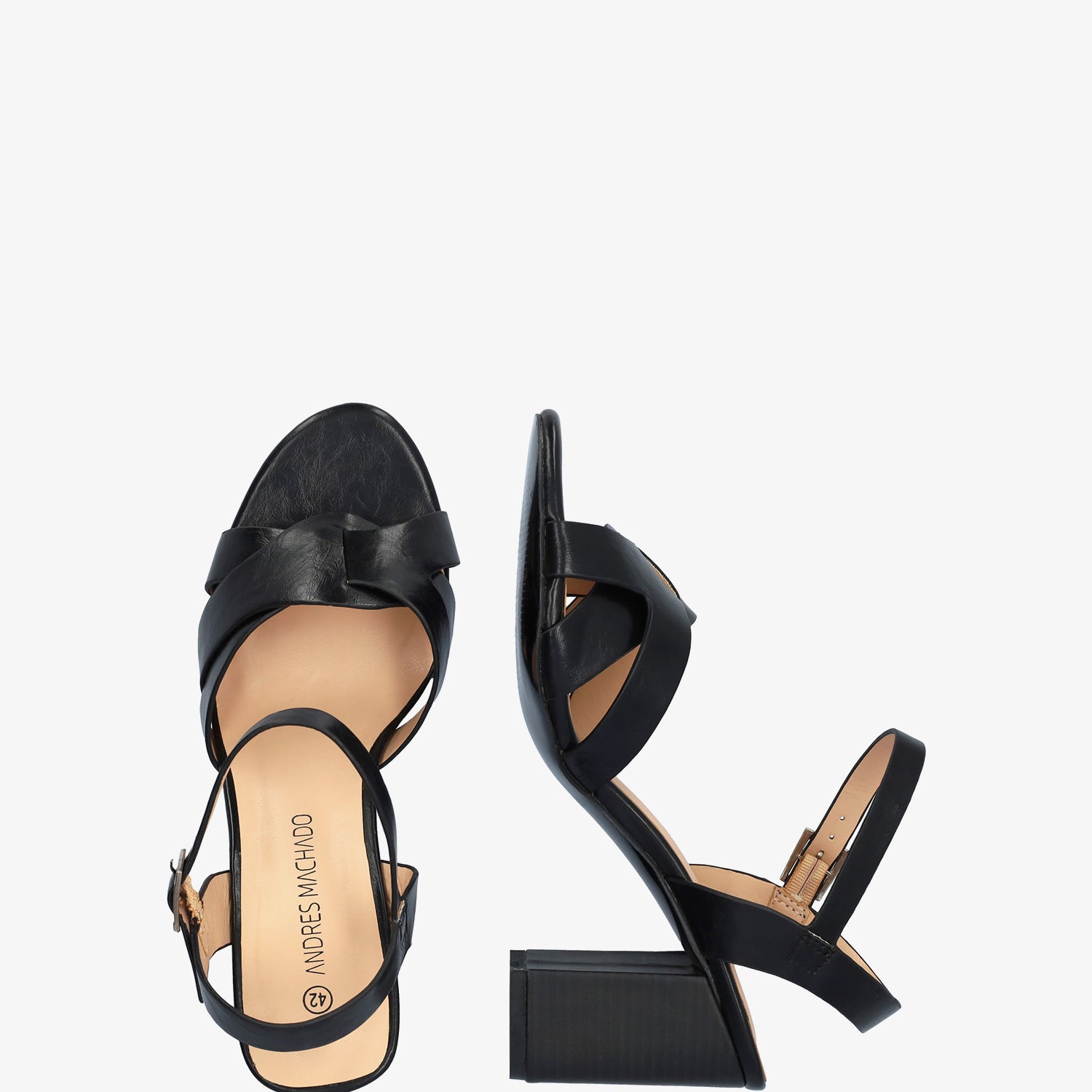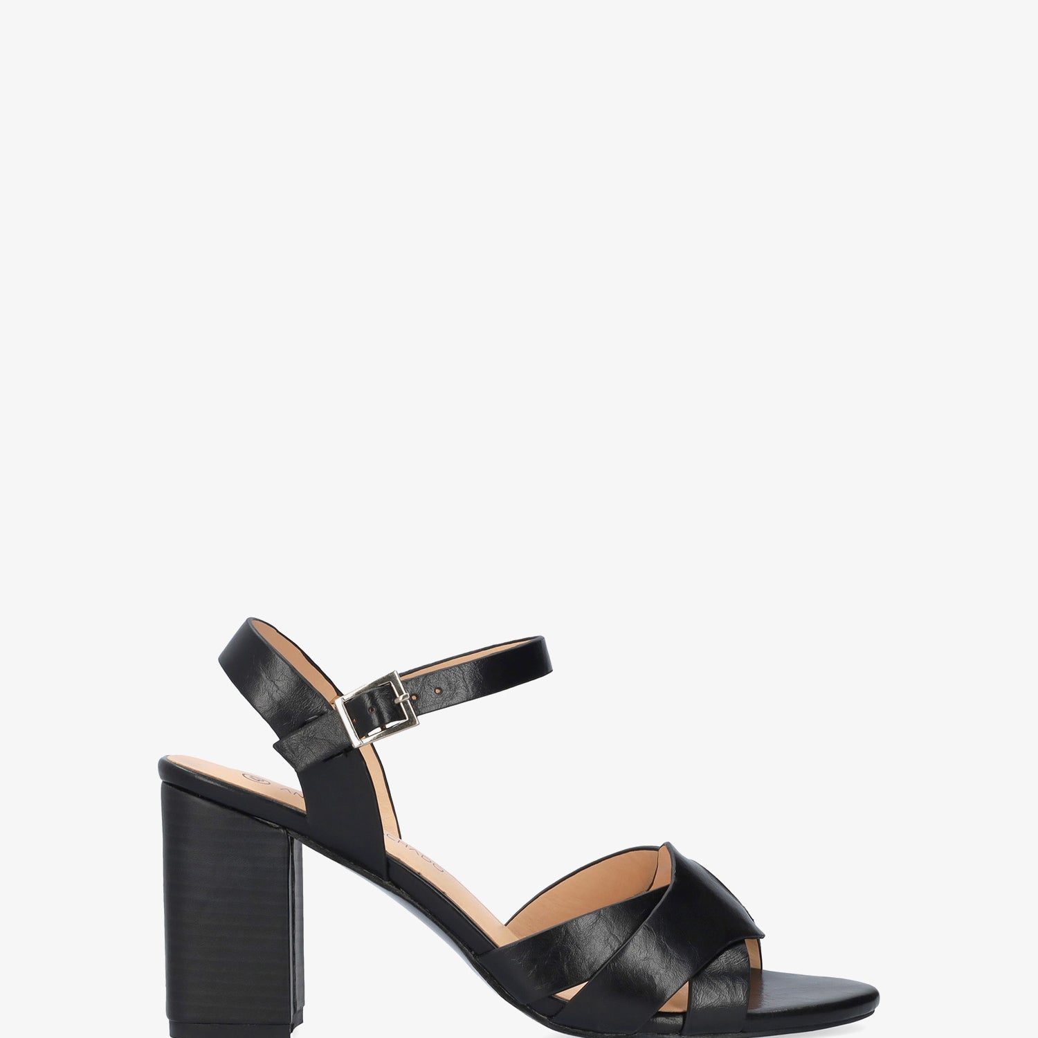 Sandalia con tacón cuadrado en soft de color Negro. Diseño con detalle de tiras entrelazadas y ovaladas sobre el empeine al tono. Cierra de hebilla metálica con tira en pulsera al tono para mejor sujeción al tobillo y acabado en punta abierta redondeada. Tacón de 8,5 cm para las tallas pequeñas de la 32 a la 35. Tacón de 9,5 cm para las tallas grandes de la 42 a la 46. Este modelo puede tener una variación de medidas respecto al estándar, te recomendamos que revises los cms de la plantilla o suela interior.